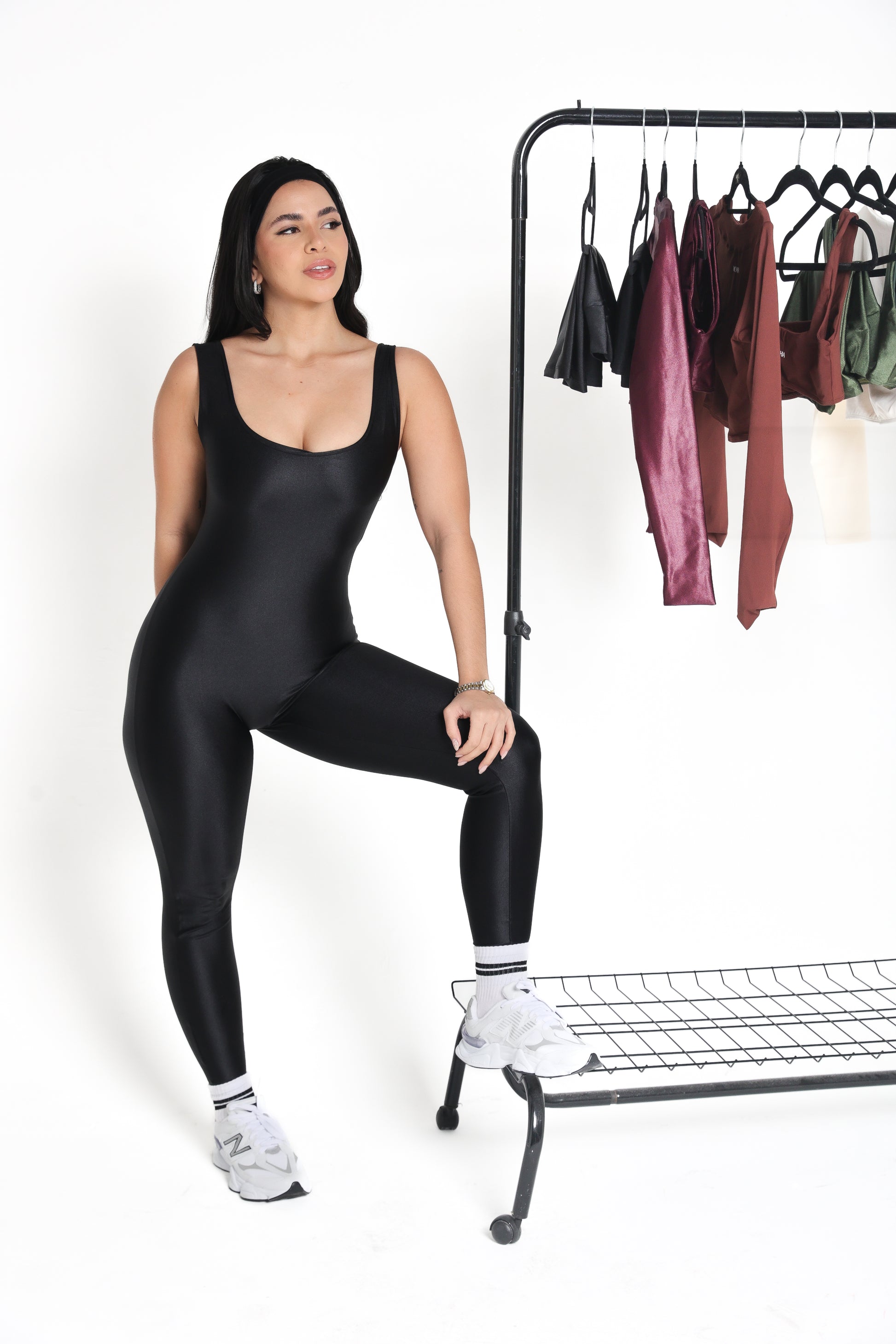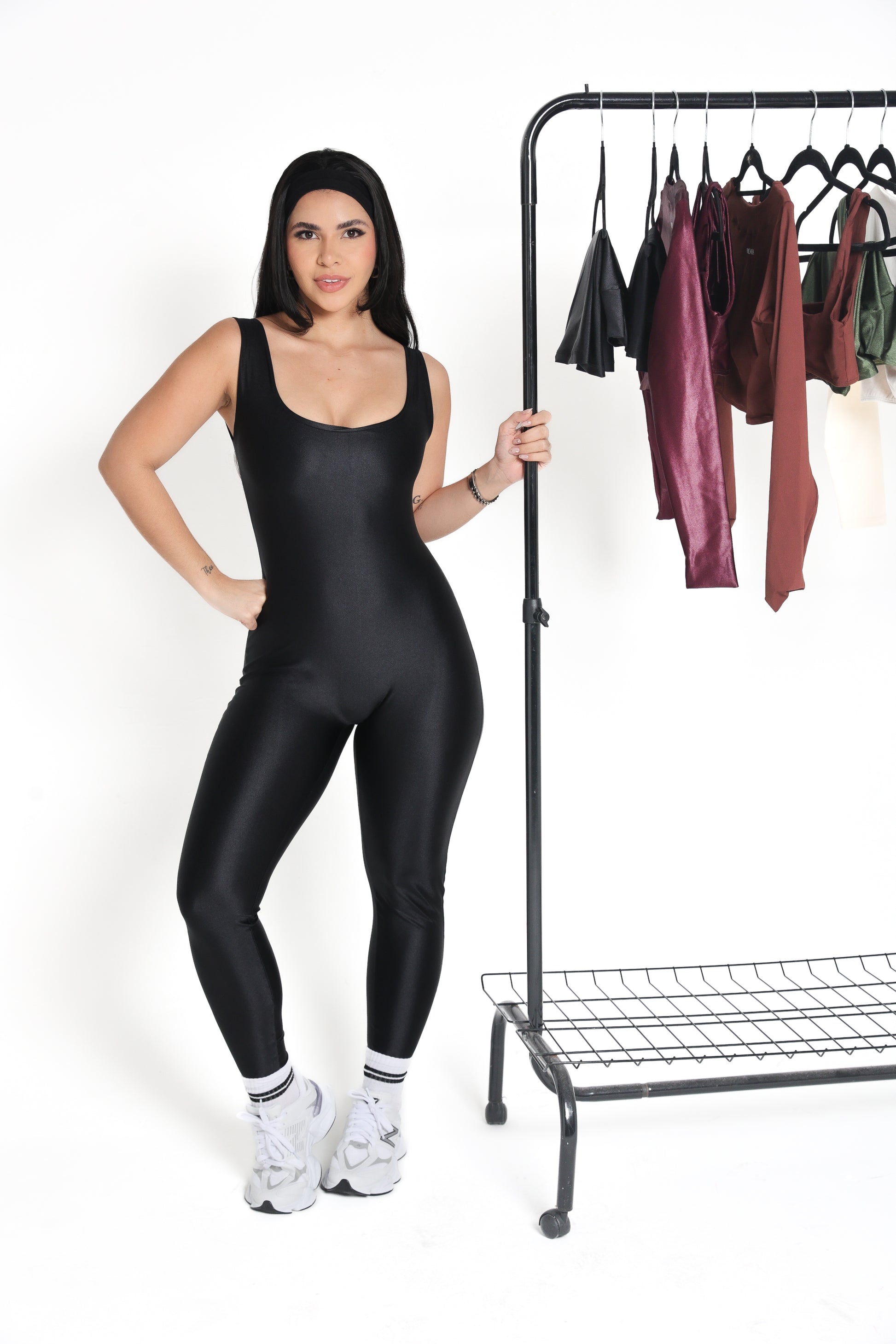 Um macacão único que combina elegância e praticidade, perfeito tanto para treino quanto para um look versátil no dia a dia.