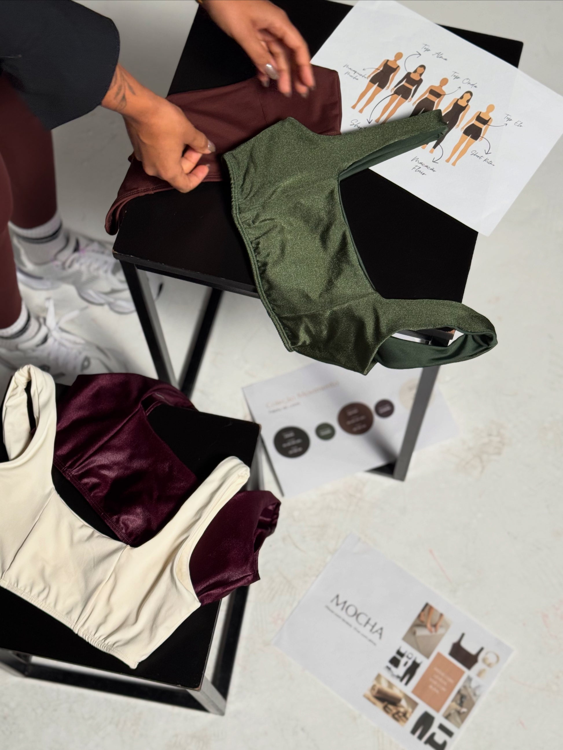 Cores disponíveis: marrom e off (Poliamida), preto, verde e roxo (Cirrê).